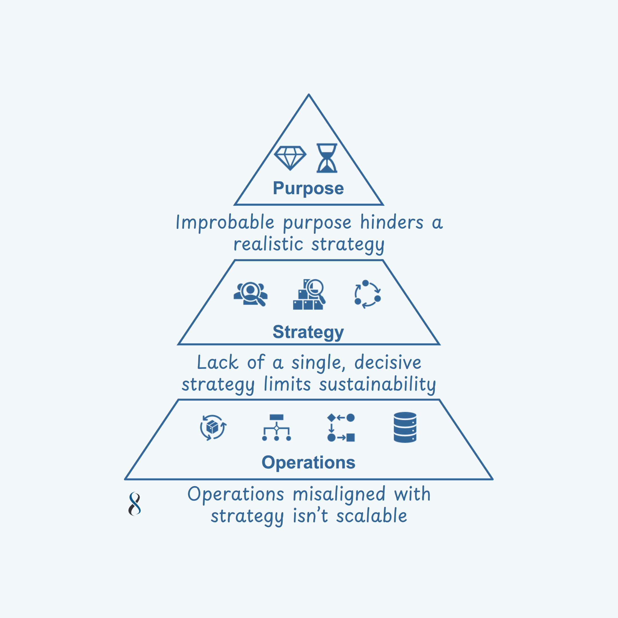Second, every company faces potential misalignments between its purpose, strategy, and operations, which lead to challenges in value creation and delivery, capital inefficiency, and unsustainability.
